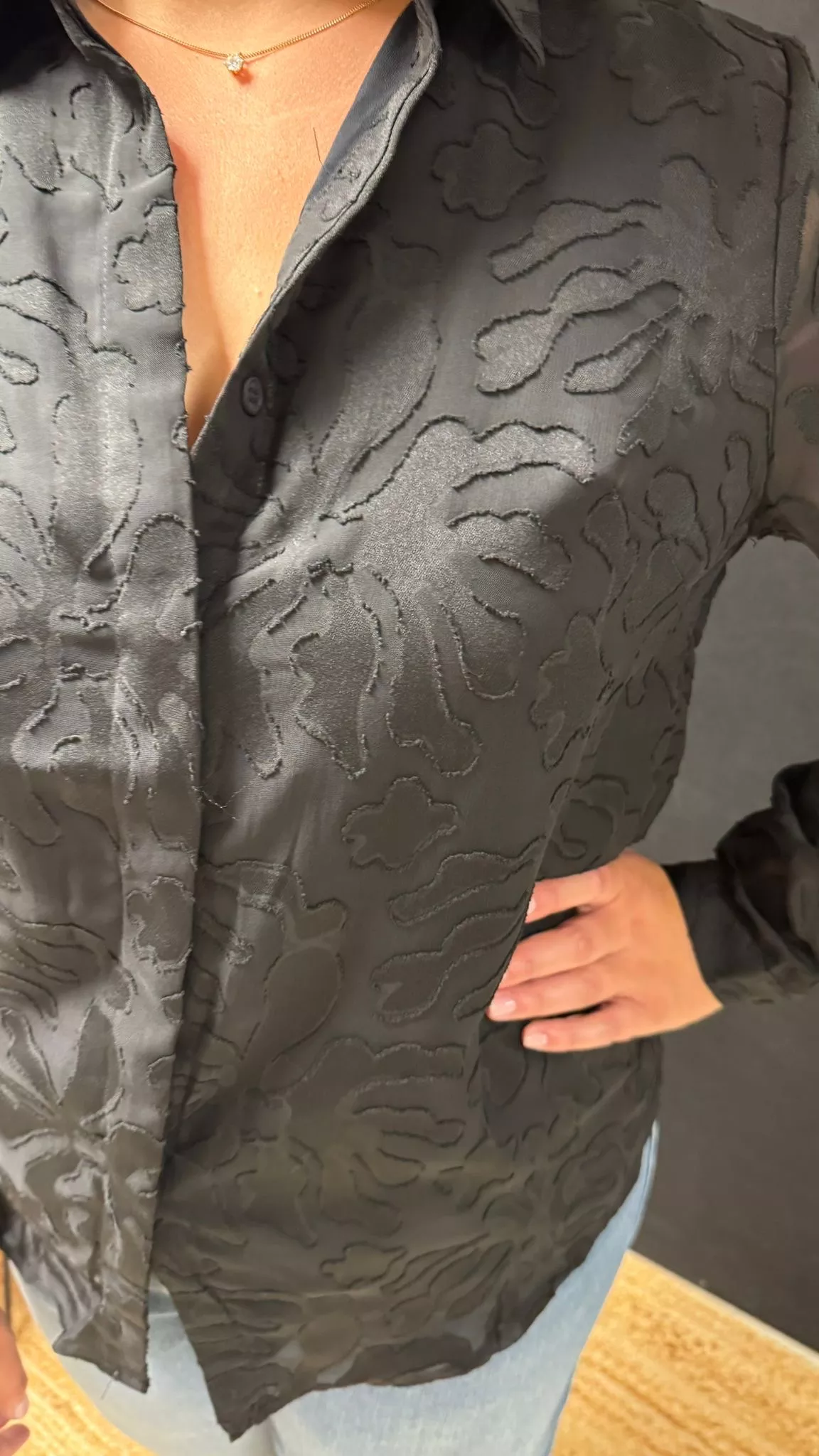 – Vorderseite gefüttert, Ärmel und Rücken mit transparentem Dévoré-Effekt