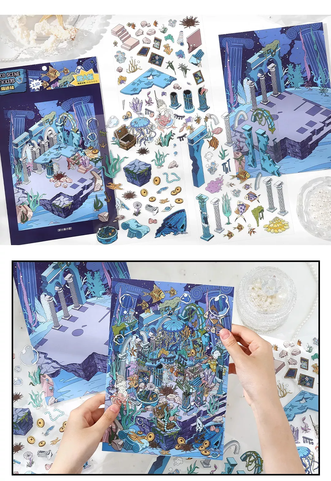 3D-Sticker-Szene mit einer Unterwasserwelt aus versunkenen Ruinen, entwickelt als ruhige, visuell befriedigende Kreativaktivität. Dieses Set ermöglicht es, eine immersive Szene aufzubauen, die Konzentration fördert und einen entspannenden Ausgleich zum Alltag bietet.