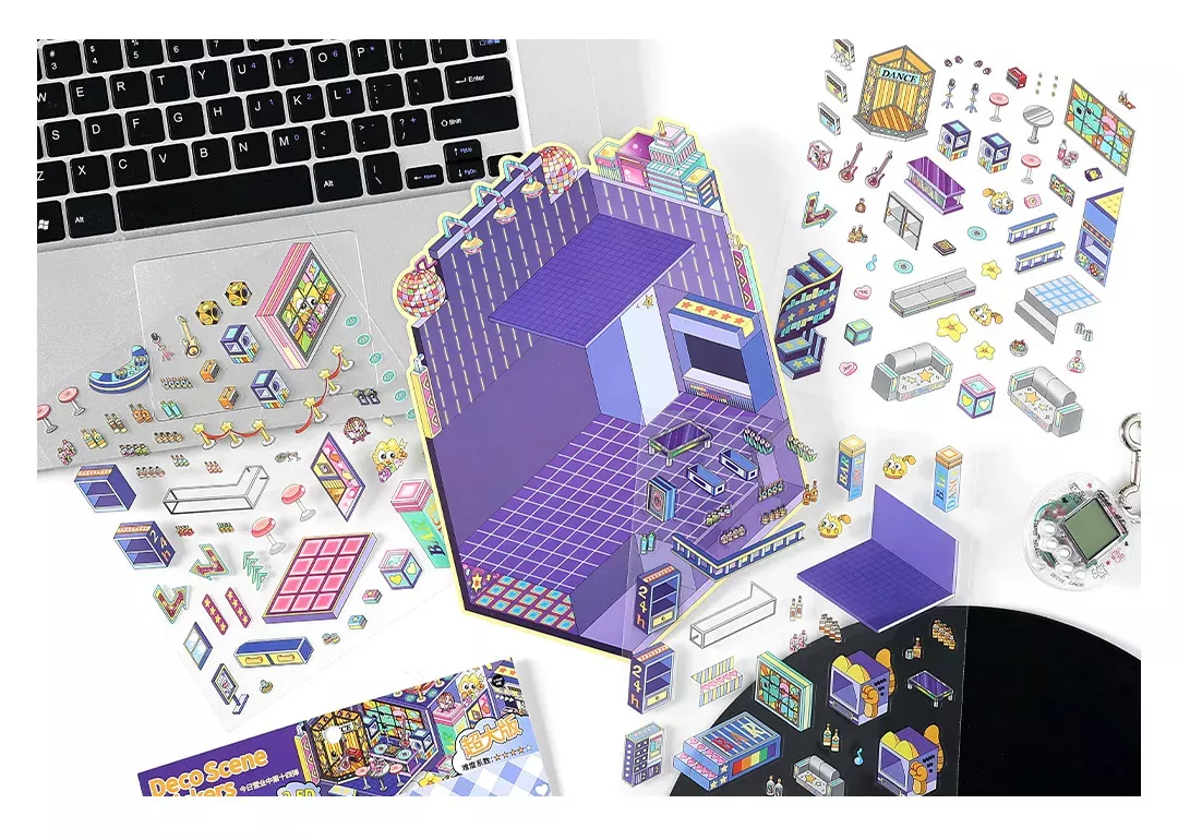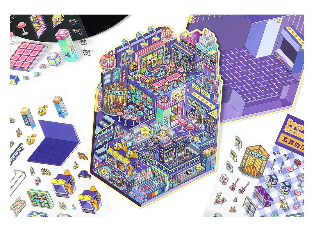 Schritt für Schritt eintauchen, ordnen und aufbauen. Die 3D-Disco-Szene wird mit Cozy Stickern auf einer bedruckten Szenenkarte zusammengesetzt. Dieses Set richtet sich in erster Linie an Erwachsene und bietet eine immersive, befriedigende und zugleich entspannende kreative Beschäftigung.