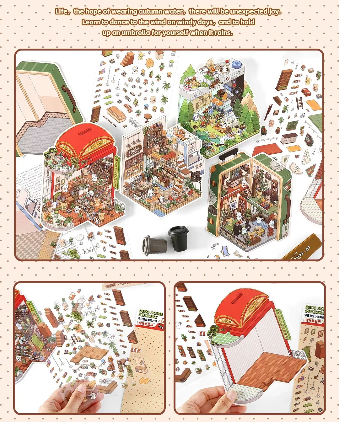 Gestalten Sie die 3D-Szene „Time Gift Shop“ mit Cozy Stickers auf einer illustrierten Karte im Format 13 × 17 cm. Dieses kreative Set ist in erster Linie für Erwachsene konzipiert und bietet eine ruhige, immersive Anti-Stress-Aktivität mit dekorativem 3D-Ergebnis.
