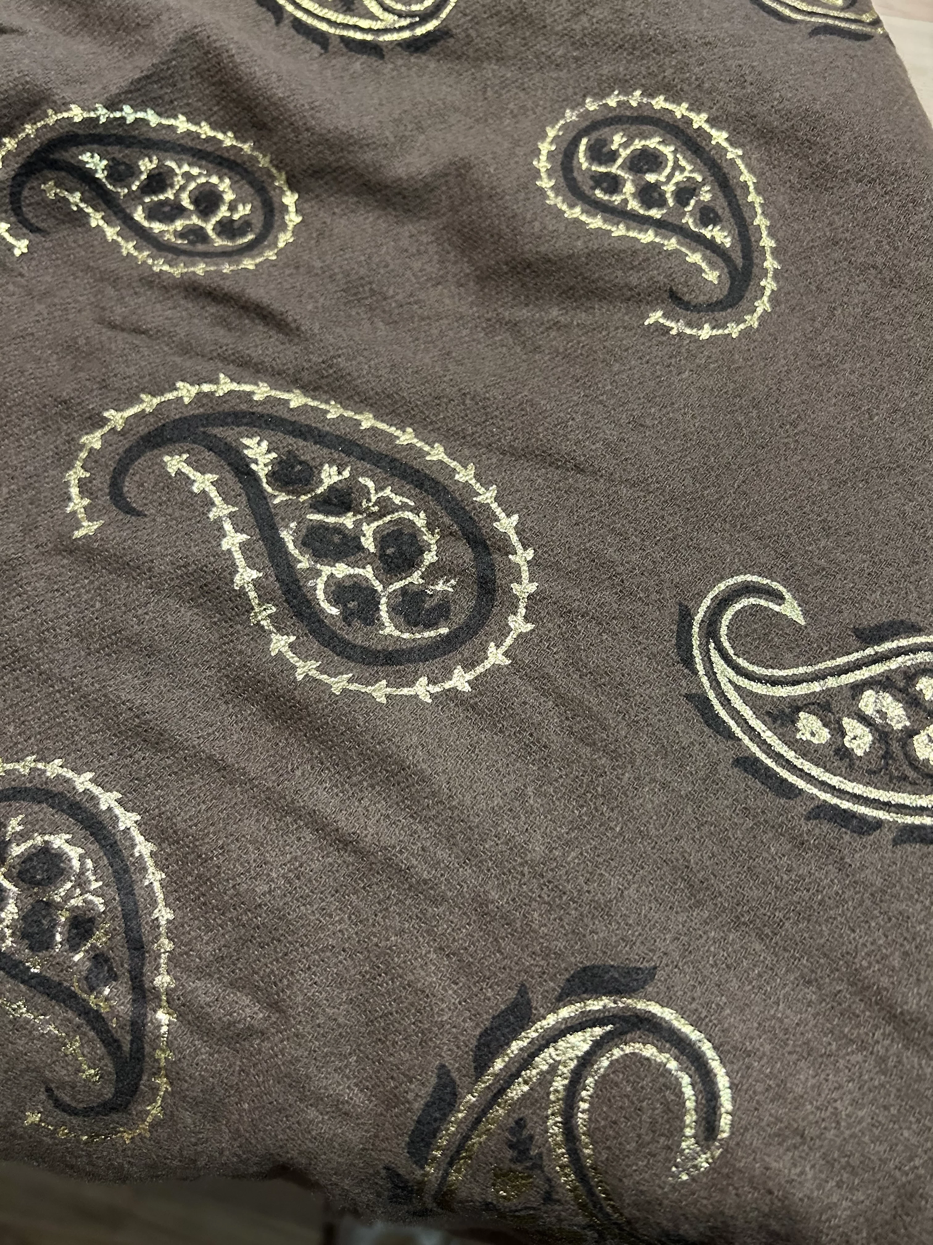 un motif paisley doré, des têtes de mort stylisées et une partie unie pour un contraste équilibré.