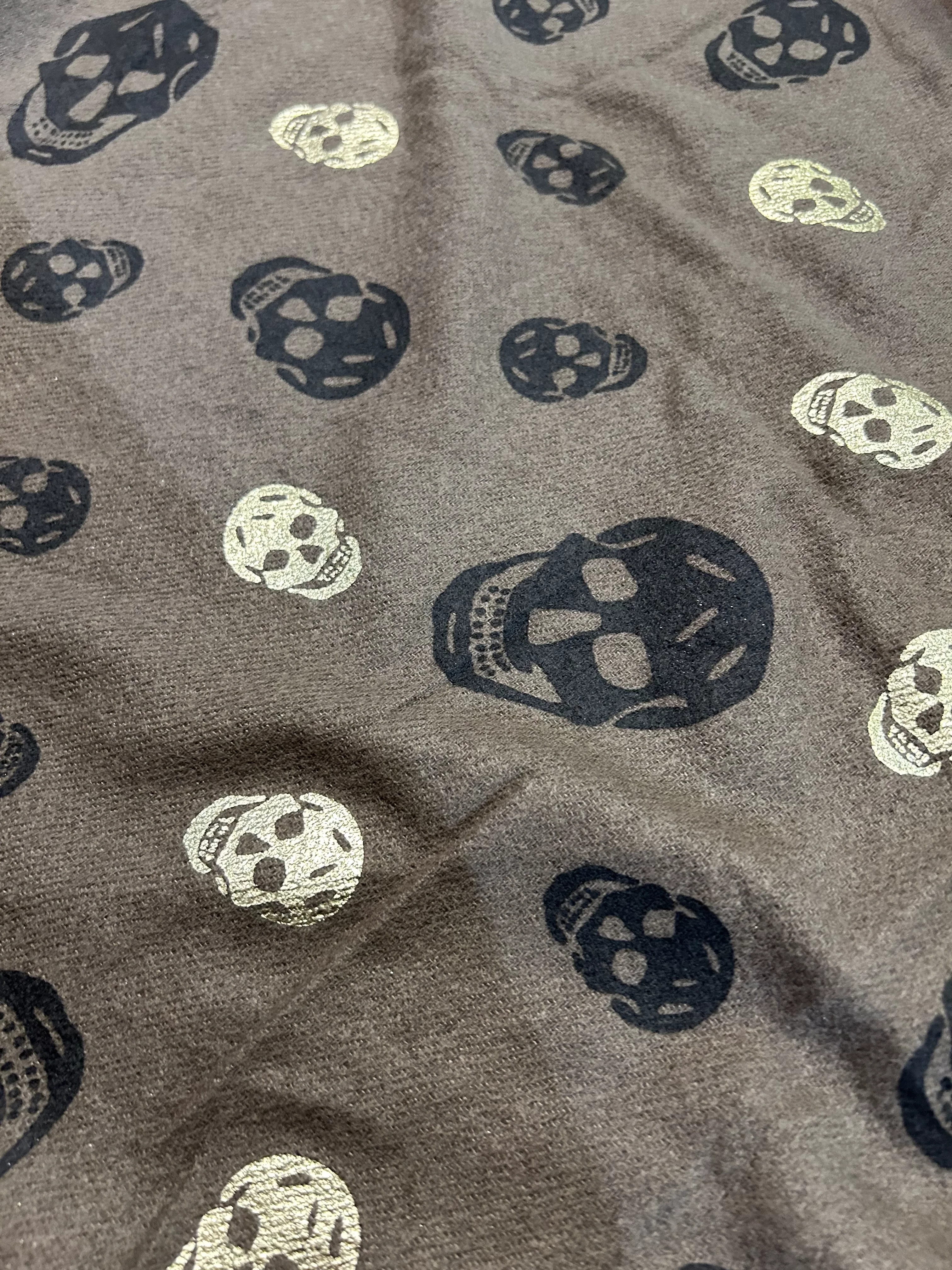 ein goldenes Paisley-Design, Skulls in Gold und eine unifarbene Fläche als Kontrast.