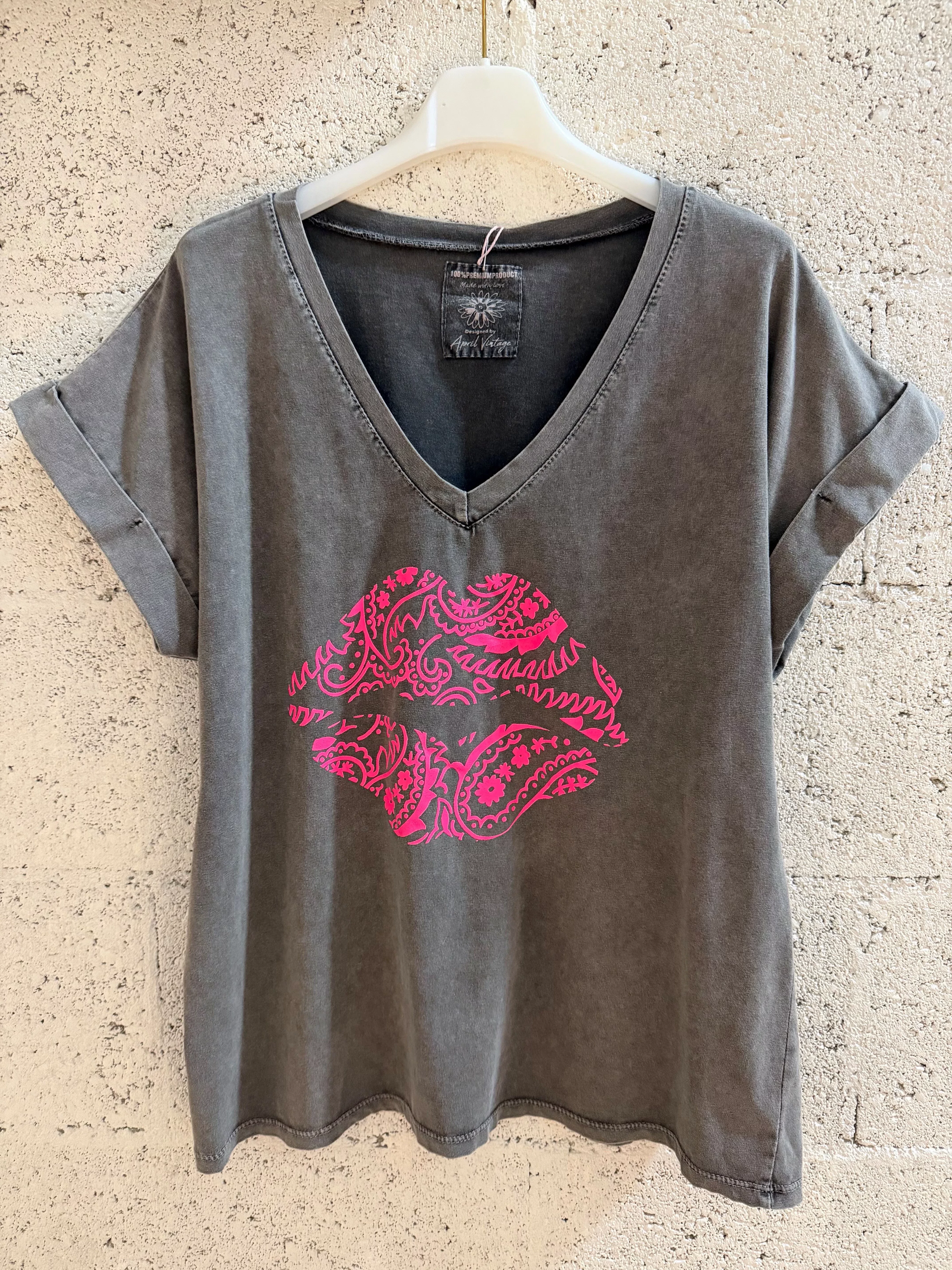 T-SHIRT CINDY – APRIL VINTAGE – COL V IMPRIMÉ