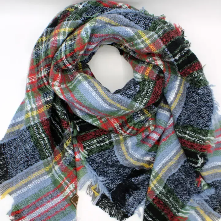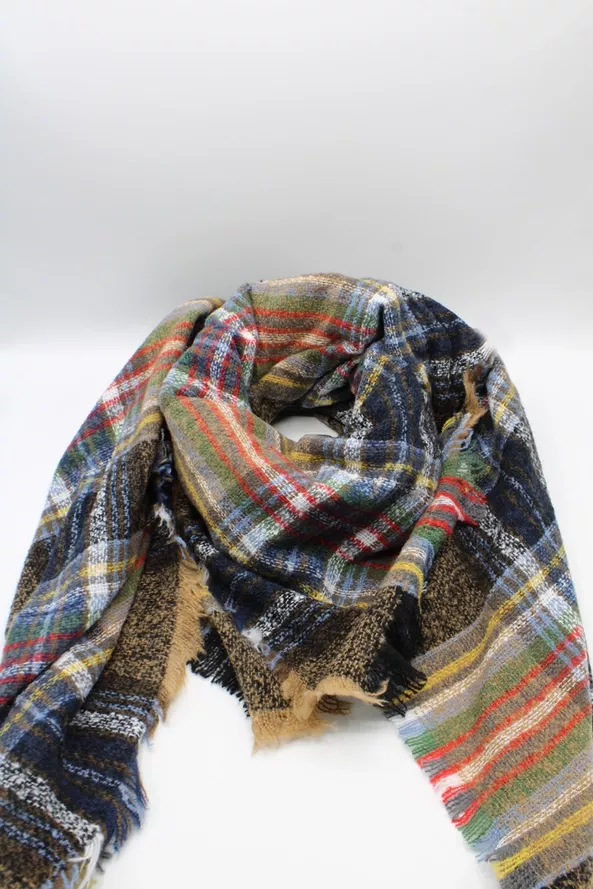 Cette grande écharpe à carreaux revisite le classique motif tartan dans une version moelleuse et chaleureuse.