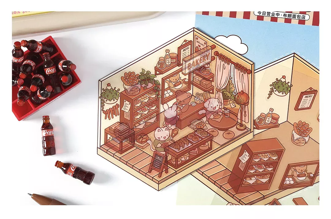 Créez la scène 3D « Bakery Brown » avec des cozy stickers à assembler sur carte décor. Pensée avant tout pour les adultes, cette activité créative immersive permet de composer une boulangerie miniature chaleureuse, disponible dans notre concept store à Lausanne et en ligne en Suisse.