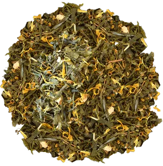 Thé estival par excellence, le Chaud Mojito propose une base de thé vert Sencha, habillé de goûts acidulés allant de la citronnelle à l’huile essentielle de citron vert, en passant par les écorces de citron. Les arômes naturels surplombent le parfum de ce thé avec la menthe, les fleurs de souci et l’exquis extrait de vanille
