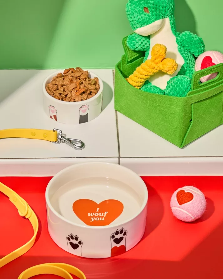 Parce que nos chiens méritent eux aussi une jolie gamelle. Ce modèle en céramique se distingue par ses motifs de pattes et son message « I woof you » au fond, clin d’œil tendre qui accompagne les repas du quotidien. Une pièce à la fois pratique et décorative, pensée pour les amoureux des animaux.