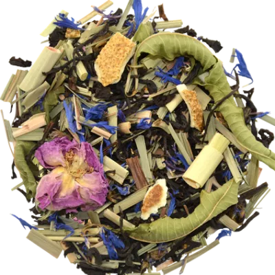 Le Jeu de l’Agrume est un mélange de thés d’exception tels les thés noirs Assam OP (Orange Pekoe) et Golden Yunnan OP, soutenus par un Assam d’Inde du Sud. Véritable panier d’agrumes, composé de citronnelle, d’écorces d’orange et de citron, ainsi que d’arômes naturels d’orange, citron et bergamote. Parfumé d’huile essentielle de citron vert, Le Jeu de l’Agrume s’adoucit avec la verveine entière, les pétales de rose et les fleurs de bleuet.