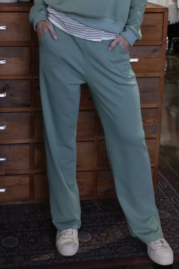 Doté d’une taille élastique et de poches latérales, il s’associe parfaitement avec le sweat Isa pour un look cosy et tendance.
