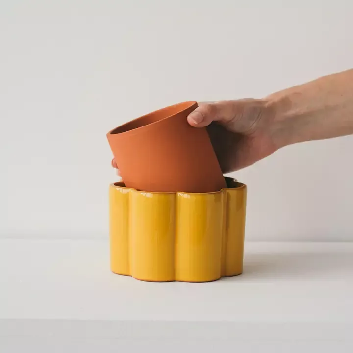 Ce pot reprend le principe ancestral des ollas : une réserve d’eau située entre les deux parois diffuse l’humidité directement vers les racines, uniquement selon les besoins de la plante. Une méthode simple, naturelle et très efficace pour l’entretien des petites plantes.