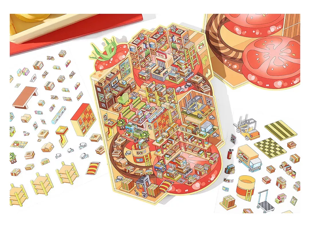 Composer, organiser, assembler. Cette scène 3D « Usine tomate » se construit à l’aide de cozy stickers à placer sur une grande carte de décor illustrée. Pensé pour les adultes, ce kit créatif propose une activité immersive, anti-stress et satisfaisante, idéale pour se concentrer et se détendre en créant un univers miniature structuré, disponible dans notre concept store à Lausanne et en ligne en Suisse.