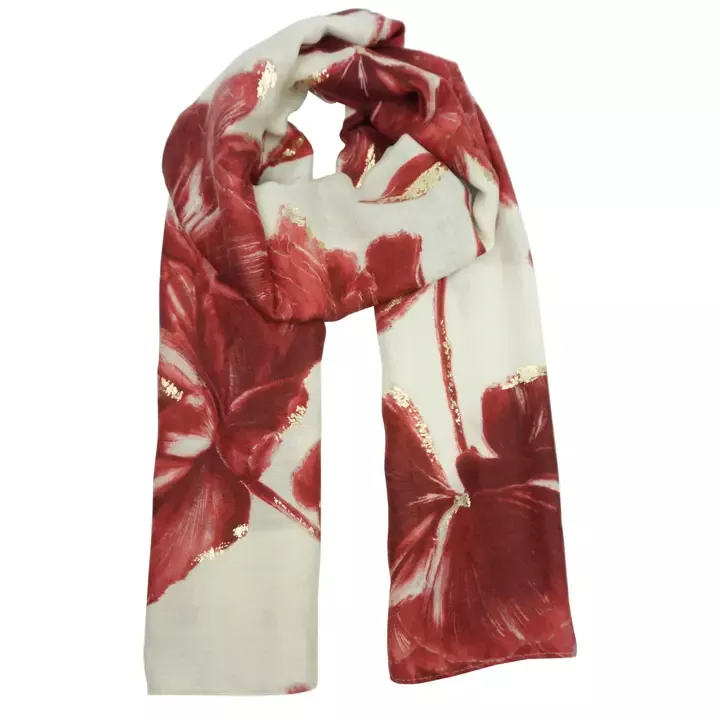 Ce foulard élégant séduit par son grand motif floral souligné de reflets dorés, qui apportent une touche raffinée et lumineuse. Disponible en plusieurs coloris (rouge, vert ou noir), il se prête aussi bien à un look quotidien qu’à une tenue plus habillée. Léger et fluide, il est idéal en mi-saison pour donner du style à vos tenues.